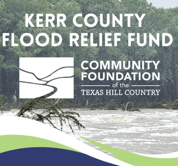 50% of all proceeds will benefit the Kerr County Flood Relief Fund, which supports families and communities affected by recent flooding.